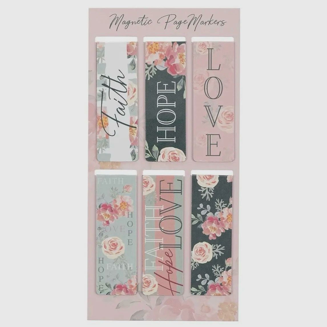 The Vintage Faith Hope and Love Magnetic Bookmark Set gives the nod to a few of a Christian woman's most cherished qualities.
